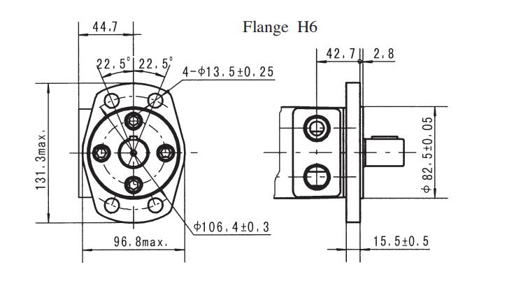 - Flange H6 Ø82106.4mm